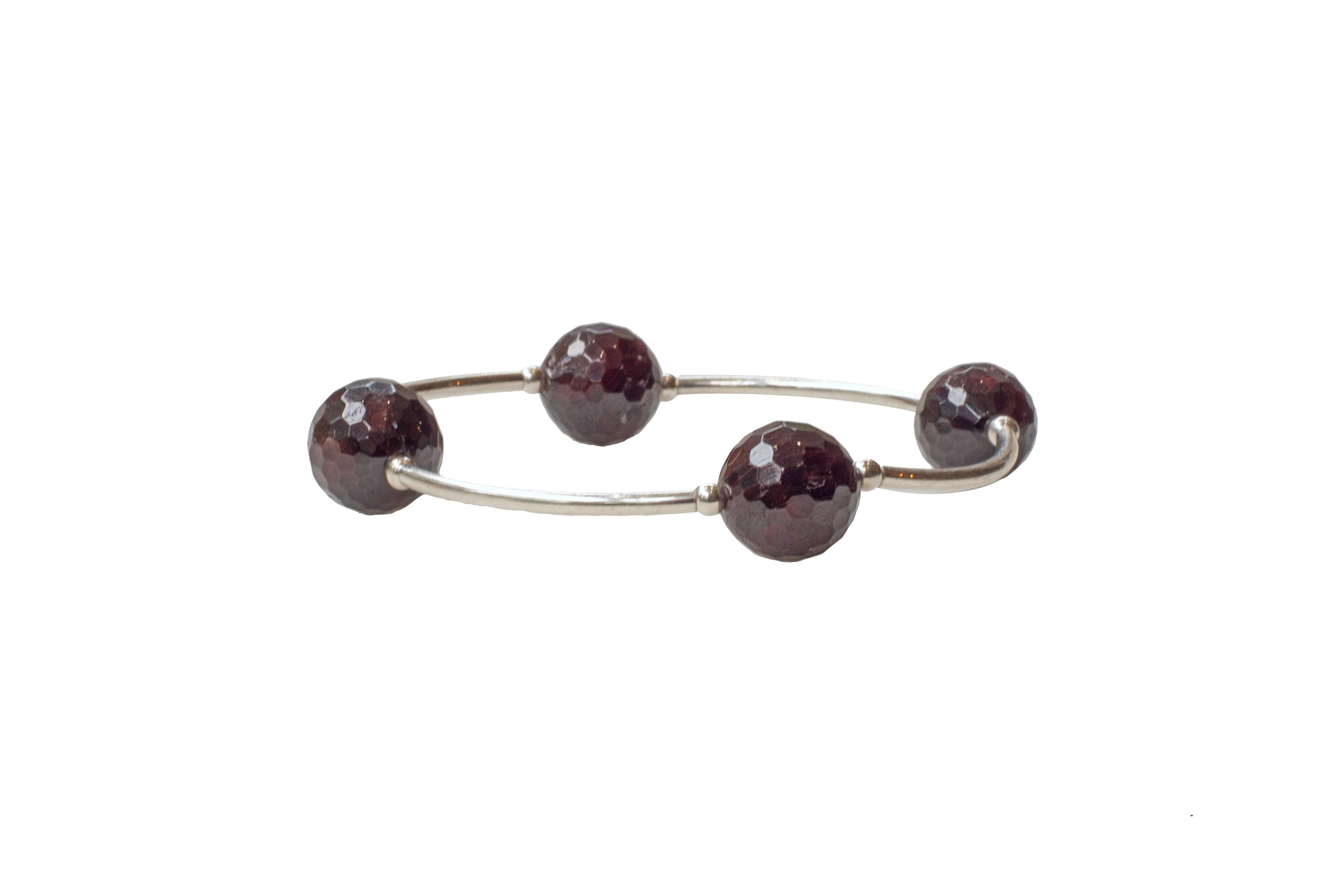 Elegant Sterling Silver Gratitude Bracelet: 12MM Round Onyx gemstone beads and Sterling Silver Links, Strung on Stretch Nylon; Standard Size fits most, up to 7" Wrist; Larger size fits up to 8" Wrist. All Blessing Bracelets come with a card attached, with the Blessing message, pictured.
