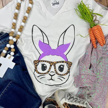 Wholesale Easter Colorful Bow Bunny Bubble Graphic Tee
