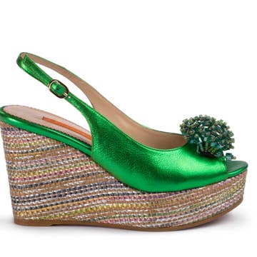 Beige espadrille with natural jute. Low wedge and padded insole for maximum comfort. Leather | Buckle closure | Cork sole | Height 3–7 cm