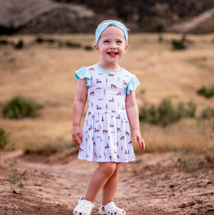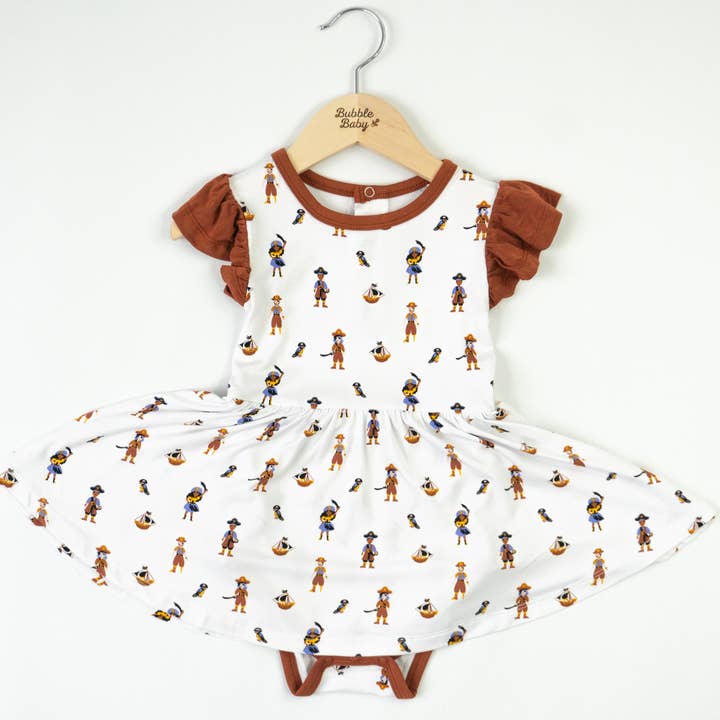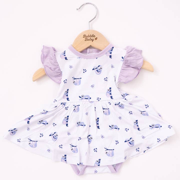 Our Flutter Bodysuit Dress features flutter cap sleeves and a bodysuit design, making it comfortable for your little one to wear all day long. Perfect for any occasion, this dress is both cute and practical. PLEASE NOTE: Babies should not wear any loose items while sleeping or unattended.