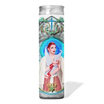 Chelsea Merrill Dolly Parton Devotional Prayer Candle Tall white altar/ prayer candle featuring the Patron Saint of Jolene. The image is from Chelsea's original painting and then printed and pasted to a traditional "7 day" white altar candle. Placement may vary slightly as these are hand-cut and placed. Please exercise caution when handling the candles and in general keep them in moderate conditions. While sturdy, ultimately these are art prints and are not able to withstand moist hot conditions. If you are interested in custom orders, making a larger order, or have any questions feel free to message me.