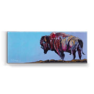 Tim the Bison by Bria Hammock brings the West to life in bold, vibrant blocks of blue. Strong, surreal, and unforgettable, this contemporary bison print mixes western wildlife with a modern art twist. Perfect for anyone who loves statement art, western décor, or colorful wildlife prints. Each print is packaged in a protective sleeve with chipboard backing, ready to display. Made in the USA.