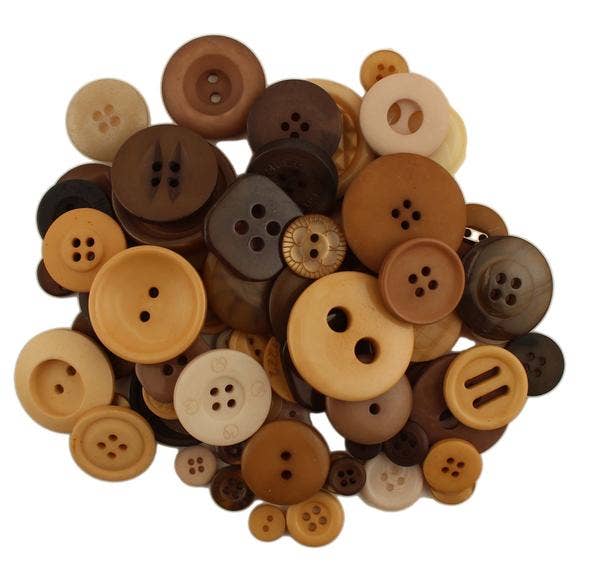 Our buttons make the perfect embellishment for all types of DIY craft & sewing projects. Sold in a 1/2 pound quantity, these hand-dyed buttons are uniquely packaged in re-closeable plastic pouches. The button variety features 2 and 4 hole sew through types with assorted finishes and ranges in size from 1/4" to 1". How many buttons? Because we measure by weight, we cannot guarantee the number of buttons you will receive. Our best estimate is about 250 - 300 buttons.