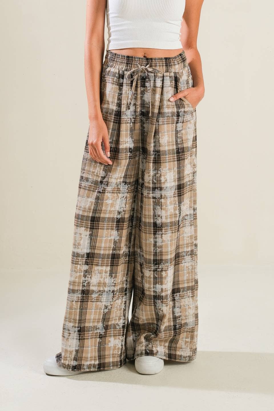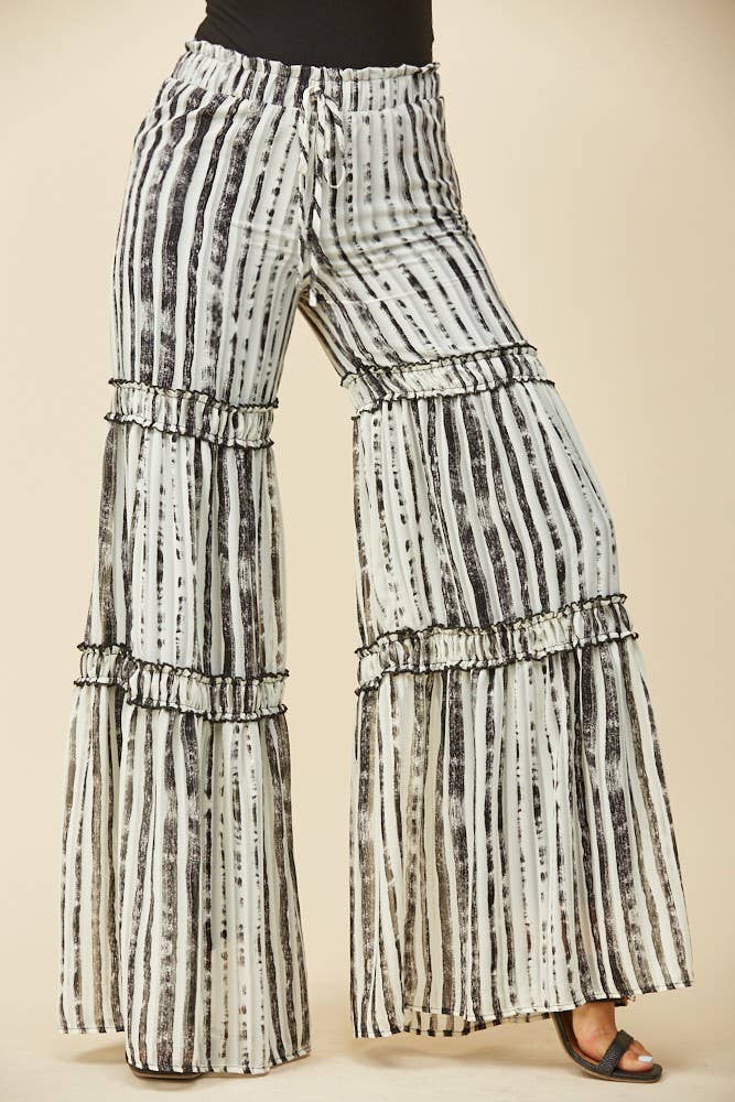Experience the bohemian and vintage influences of Angie in our 25R84-W980 Elastic Waist Wide Leg Pants with Lace Trim. These retro-styled pants are designed with a delicate lace embellishment and made from soft rayon, promising comfort and a unique aesthetic. Ideal for resort or vacation wear, the elastic waist and wide-leg style cater to a relaxed, yet fashionable look. The floor-length design adds a touch of drama, making these pants a perfect choice for the well-traveled, romantic spirit. Designed with a junior fit.