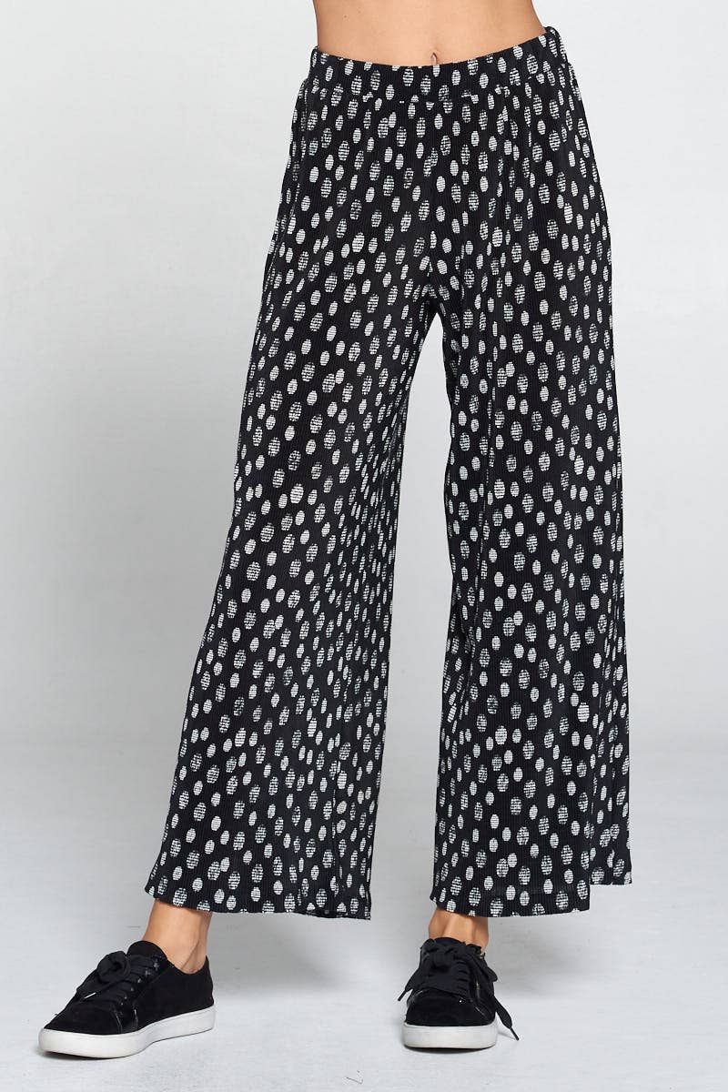 25R84-W980 ELASTIC WAIST WIDE LEG PANTS WITH LACE TRIM