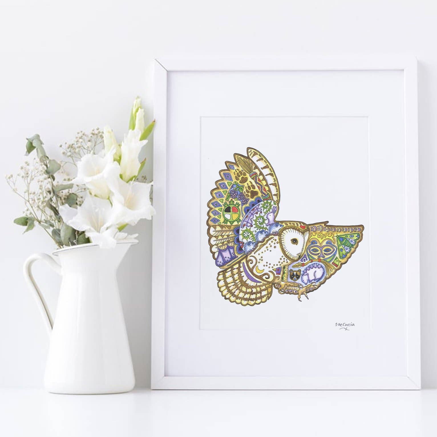 Adorn your space with the charm of our art print featuring a darling wide-eyed owl crowned with a vibrant and full flower crown. The owl gazes with curiosity and innocence, adding a touch of enchantment to any room. Hang this artwork in your study or to infuse a sense of creativity into your work environment. • Printed with vivid colored inks on cotton canvas mounted on wood • Solid hardwood frame in shown stain colors • Sustainable American sourced wood • Made in the USA in our Utah studio • MINI 6" tall x 6" wide x 1.25" deep w/ 1/4" thick frame • SMALL 11" tall x 11" wide x 1.25" deep w/ 1/4" thick frame • MEDIUM 15" tall x 15" tall x 1.5" deep w/ 3/4" thick frame • LARGE 22" tall x 22" tall x 1.5" deep w/ 3/4" thick frame • Signs may have +/-1" variations • All signs can stand on a shelf or table (Medium & Large can also hang on a wall) • Farmhouse style frames have small rustic imperfections that make them unique