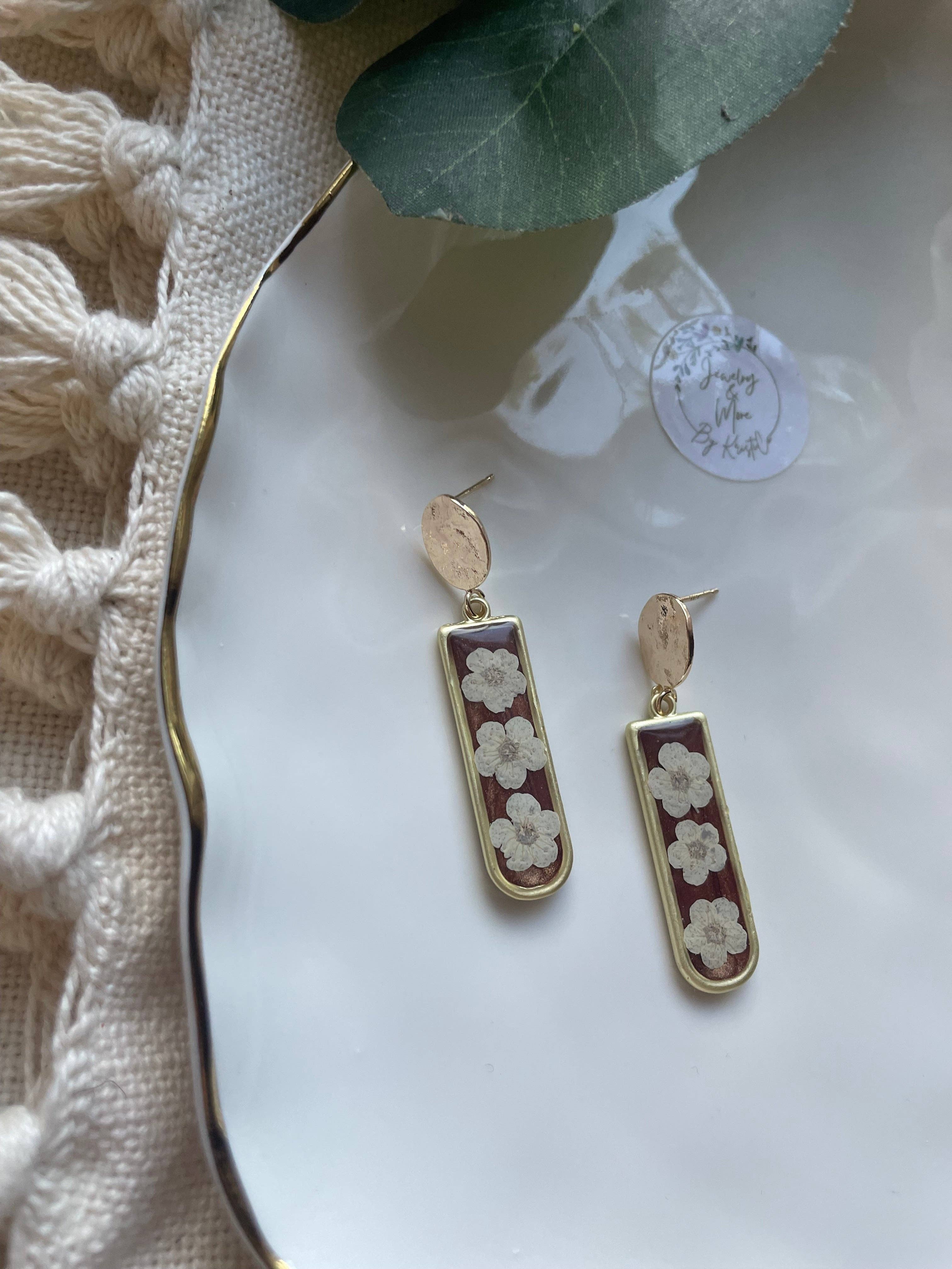 Real fern leaf and gold flakes capsuled in clear resin. Fashionable stud embellishment.