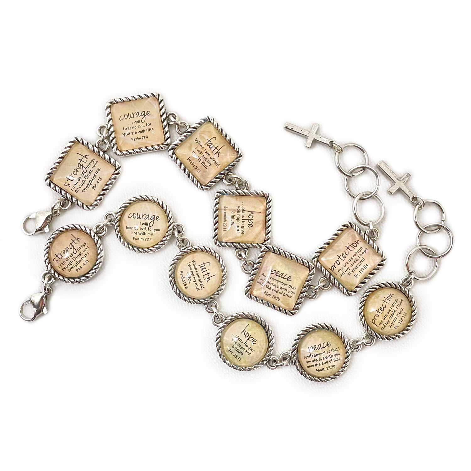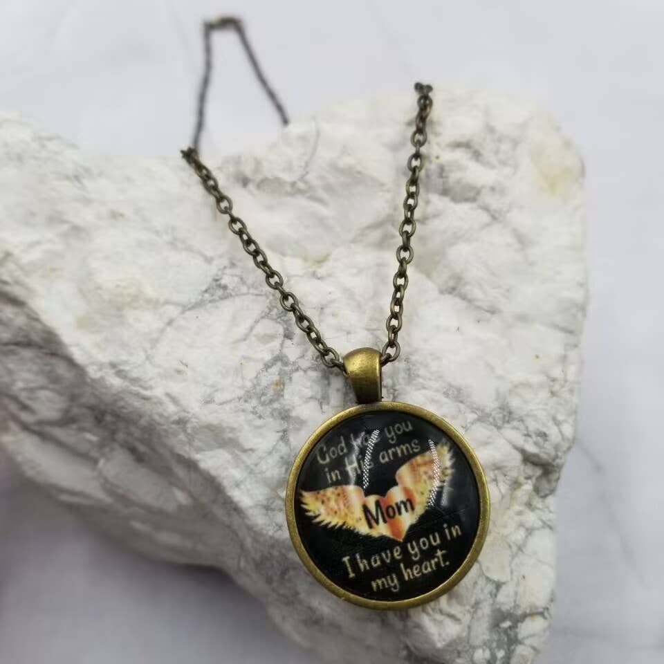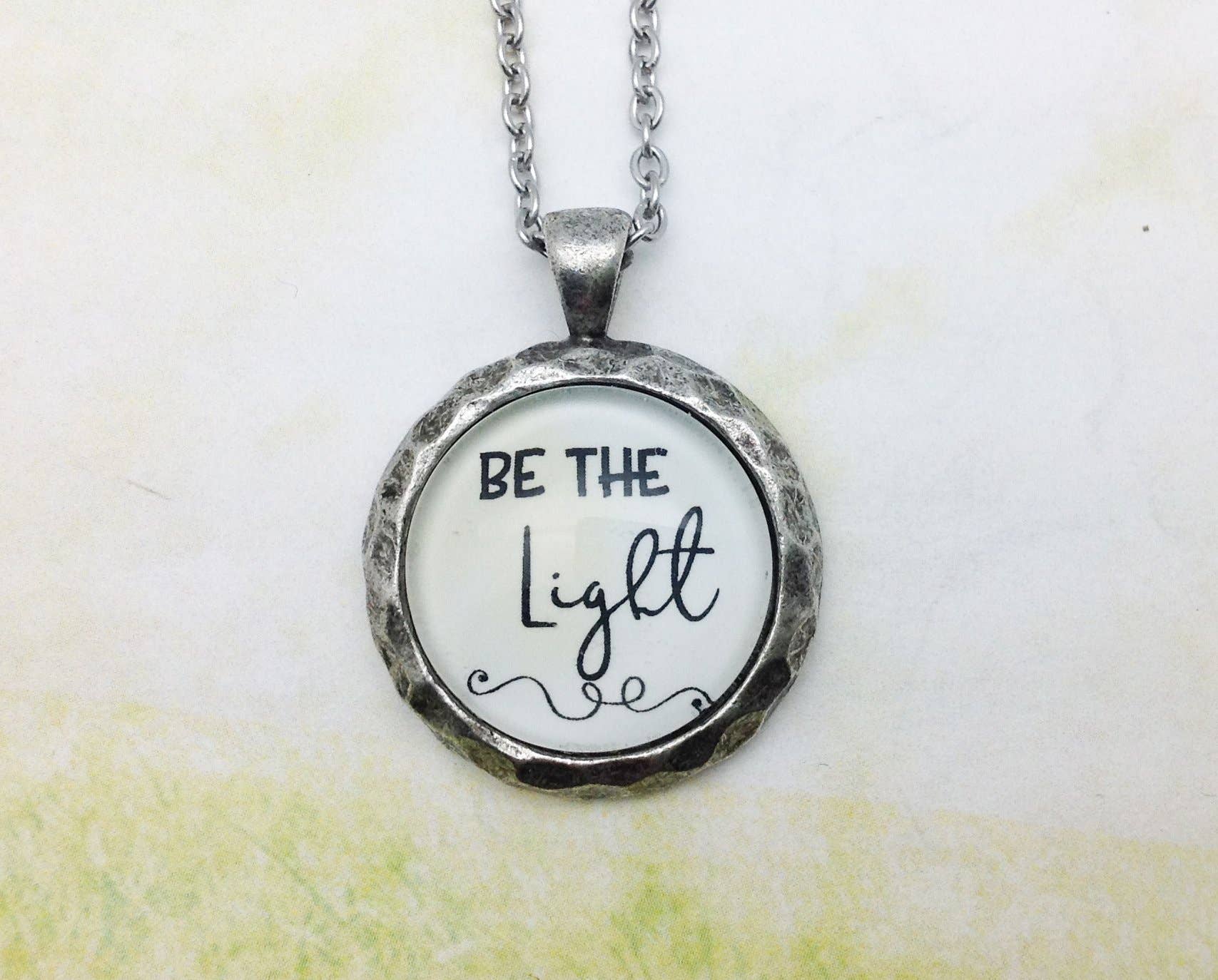 "His eye is on the sparrow, and I know He watches me." This beautiful, silver-plated glass pendant necklace features these words to the Gospel hymn written over 100 years ago by Civilla D. Martin. The words and illustration of a sparrow are magnified under a large glass cabochon with a neutral/multi-color background and set in a silver-plated pendant – available in your choice of two sizes – and strung on a silver-plated chain with lobster claw clasp. The back of the pendant is almost as beautiful as the front! Choose your pendant size: 20mm: Glass is approximately 7/8” (20mm) in diameter with 20" chain 38mm: Glass is approximately 1 1/2” (38mm) in diameter with 24" chain Each ScriptCharms necklace is handcrafted to order.