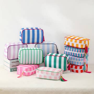 This handy cosmetic bag is in checkered pattern knitted material. Light Vinyl lining inside. Absolutely adorable! Dimension: 8” x 4” x 3”