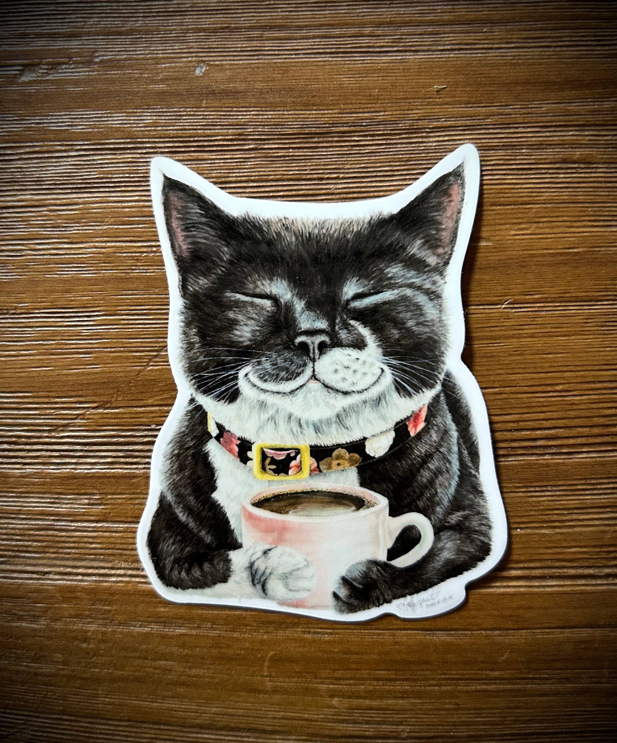 Do you love vintage teacups? Do you love cats? Then I have the sticker for you! It's a cat sticking its head out of a tea cup. It's paws-a-tively adorable! 🤓 🐱 Details: Size: 3" x 2.8" Material: High-quality water-resistant vinyl and laminated in a glossy finish. Perfect For: Laptops, Water Bottles, Notebooks, Planners, and more. The possibilities are truly endless.