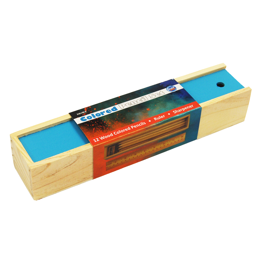 41 pc art set with blank, kraft paperboard case to create your own cover masterpiece. Includes; 18 colored pencils, 12 oil pastels, 8 watercolor cakes and one each; paintbrush, pencil sharpener, eraser. rope handle and closures.