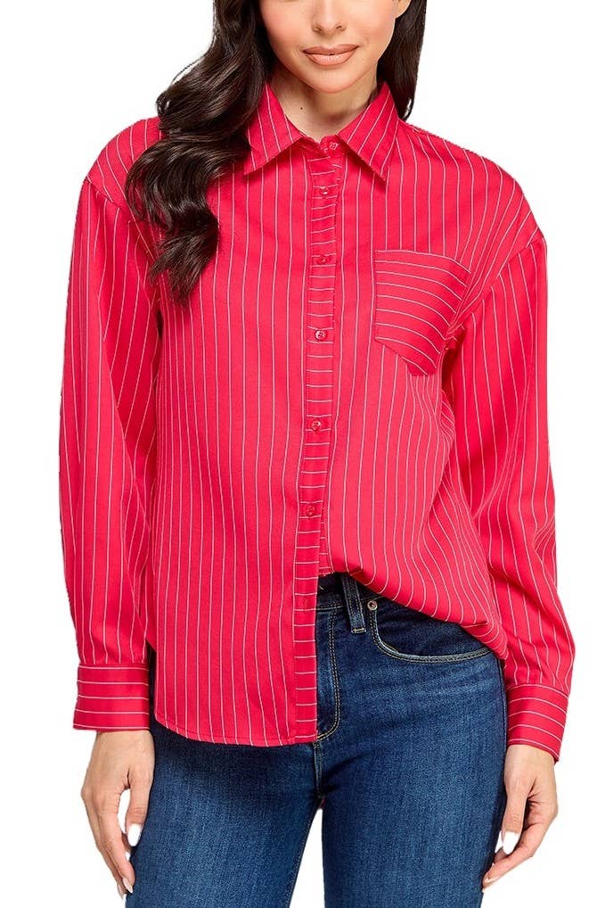 Our Casie 2 white oxford cloth shirt is adorned with striped ribbon on the placket, the cuff, and the back of the collar. So you can wear it down for subtlety or popped for drama! White Oxford w/Red, White & Black Stripe Ribbon SIZING INFO *OXFORD shirts have a slightly contoured fit* XS S M L XL XXL 3XL 0/2 4/6 8/10 12/14 16/18 20/22 24/26 32-34 35-36 37-38 39-41 42-44 45-47 48-51 *Please measure at the fullest part of the bust. You can also lay down your favorite shirt and measure across 1" BELOW the armhole XS S M L XL XXL 3XL 18 19 20 21 1/2 23 24 1/2 26 1/2