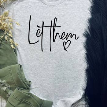Let Them. Distressed Typography Funny Graphic T-shirt GRAPHIC PROCESS: Our crewneck t-shirts are printed on super soft tees made of 50/25/25 polyester/combed ring spun cotton/rayon and are printed using the sublimation process in which the ink is dyed into the shirt fibers, meaning that the graphic will not flake or peel away. Ink colors are MOST vibrant on light colored tees. SIZING: This is a true to size unisex shirt. Our customers are most satisfied with the size they normally wear in a women's size t-shirt. Small fits sizes 4-6 Medium fits sizes 8-10 Large fits sizes 12-14 XLarge fits sizes 16-18 2XLarge fits sizes 20-22 DETAILS: -Crew Neck Style -Short Sleeve -Modern, unisex fit -Solid Colors: 50/25/25 polyester/combed ring spun cotton/rayon -Preshrunk -High quality soft fabric CARE: -Wash inside out with like colors. -Tumble dry low or hang to dry. -No bleach/fabric softener Women's Trendy Tees Women's Graphic Apparel Women's Plus Sizes Inspiring Shirts Funny T-Shirts