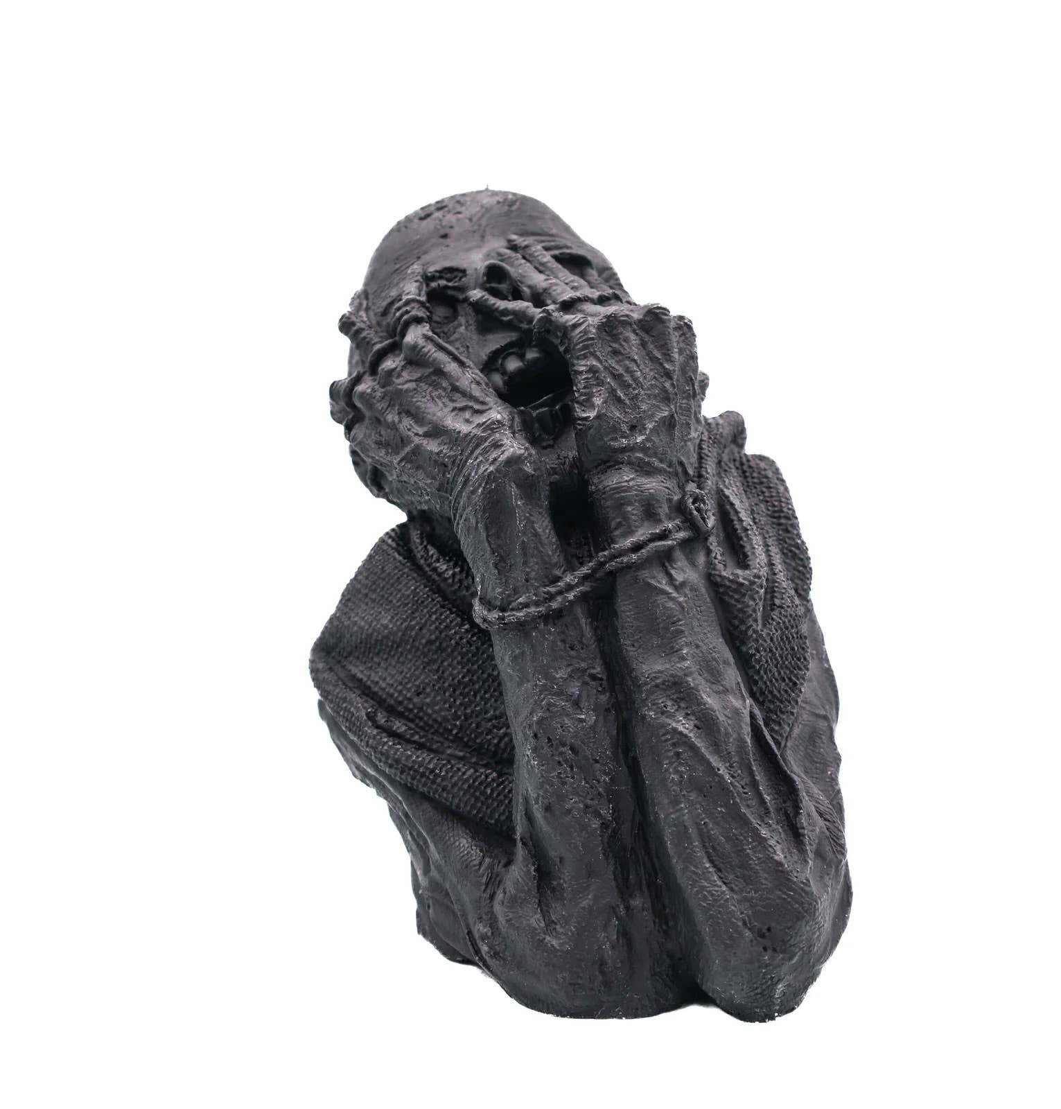 Add this intricately weaving snake and skull candle to any space for a touch of dark elegance. Available in black. Made with the perfect blend of 100% soy wax and food grade paraffin for a more aesthetically pleasing hardened decorative candle without frosting Handcrafted in Canada. 5.5"H, 4.5"L; 4"W; Net Wt. 0.27 kg Made with sustainably sourced, 100% natural ingredients including lead-free cotton wicks for a clean burn Fragrance-free (unscented) DISCLAIMER: Due to its handmade nature, slight imperfections may occur.