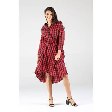 -PLAID WOVEN FABRIC -COLLAR DETAIL -BUTTON DOWN CLOSURE FRONT -2 POCKET DETAIL ON CHEST -PLEAT DETAIL ON SHOULDER -DROP SHOULDER -LONG SLEEVE WITH CUFF BAND -HI LOW HEMLINE -MINI LENGTH MODEL IS 5' 10" AND IS WEARING SIZE SMALL