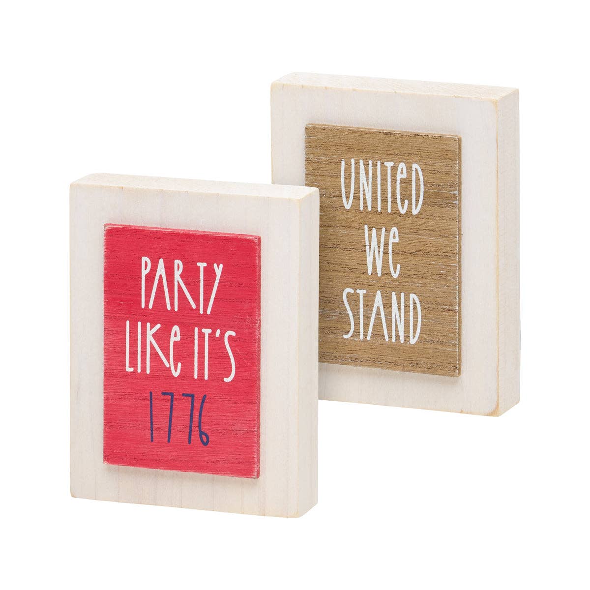 Celebrate this 4th of July with this "Party Like It's 1776" wood sign made in America! • Printed with high resolution archival giclee inks • Fine art cotton canvas mounted on wood • Solid hardwood frame in shown stain colors • Sustainable American oak or alder wood • Made in the USA in our Utah studio • MINI 6" tall x 6" wide x 1.25" deep w/ 1/4" thick frame • SMALL 11" tall x 11" wide x 1.25" deep w/ 1/4" thick frame • MEDIUM 15" tall x 15" wide x 1.5" deep w/ 3/4" thick frame • LARGE 20" tall x 20" wide x 1.5" deep w/ 3/4" thick frame • Signs may have +/-1" variations • All signs can stand on a shelf or table (Medium & Large can also hang on a wall) • Farmhouse style frames have small rustic imperfections that make them unique