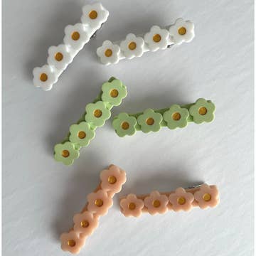 Wholesale Triangle Embroidered Floral Snap Hair Clips | Green&Mustard