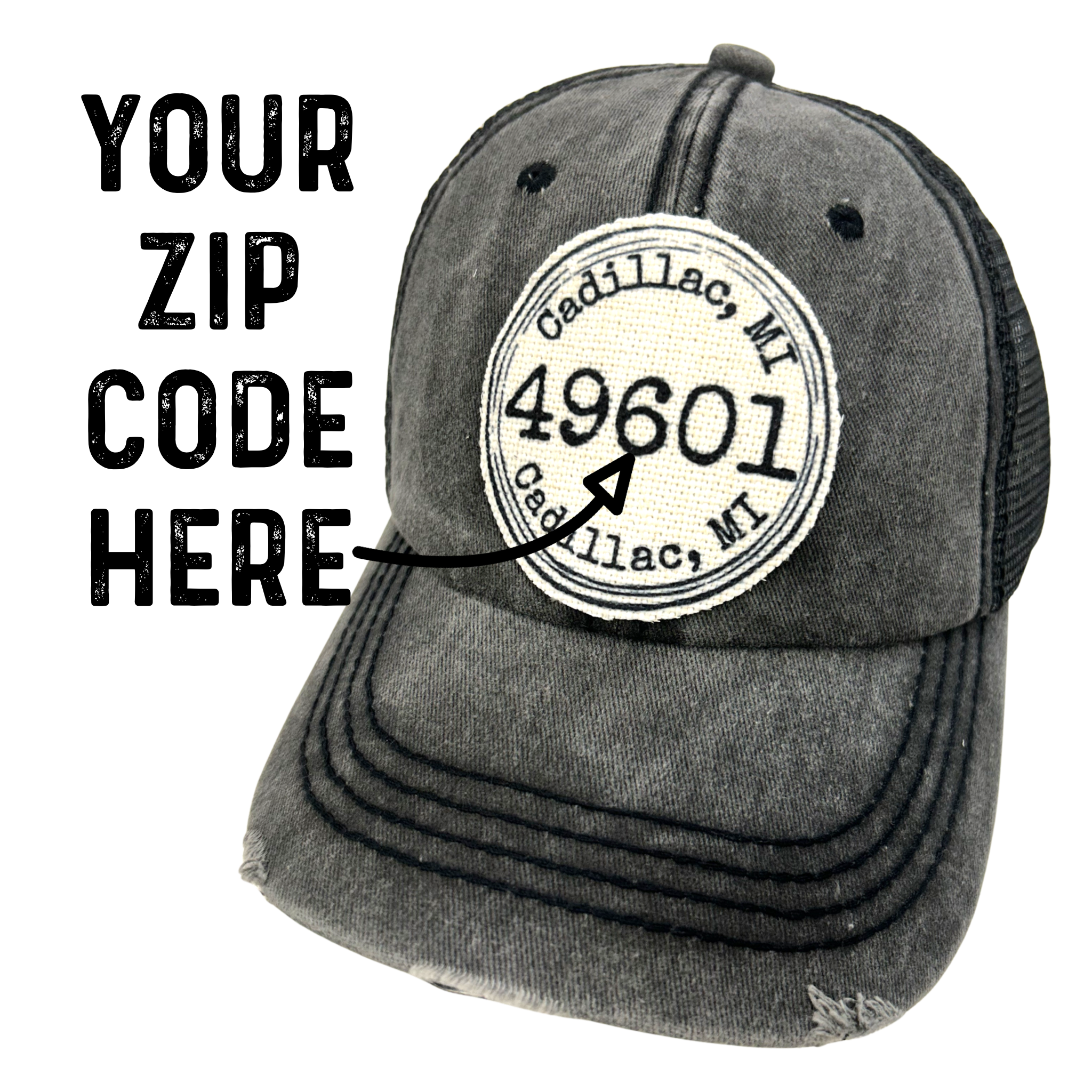 YOUR ZIP CODE/TOWN CUSTOMIZED HATS Round Design