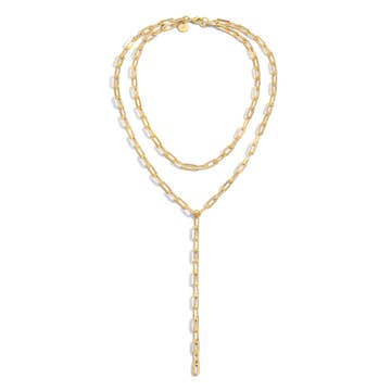 Introducing the Tamara necklace from Vie en Bleu, a symbol of timeless elegance. This exquisite piece, handcrafted in Austin, TX, features 14k gold filled chain interspersed with freshwater pearls, offering a chic and sophisticated look. Ideal for everyday wear or special occasions, this beaded pearl necklace is a testament to our brand's commitment to quality and style. Wear it alone for a minimalist appeal or layer it for a more dramatic effect. The Tamara necklace is more than just a piece of jewelry, it's a statement of refined taste. Welcome to the world of Vie en Bleu.