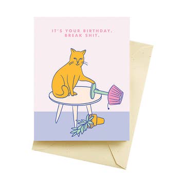 I know it's your birthday, but pay attention to me. Or else. Size: A2 (4.25x5.5) Card is blank inside. Printed with vibrant Indigo Ink on a felt-textured Neenah card stock. Attached to a red envelope with a card clasp sticker (cello sleeves available on request).