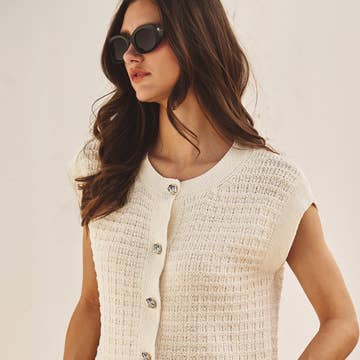 Sunbean - Wholesale Sweater Vest - Women's - Seaside Swirl Human Cotton Knitted Tunic Vest with Tie Front7