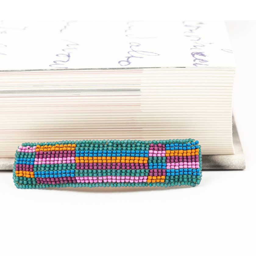 Introducing our Handmade Native Style Hair Barrette in a captivating blend of colors: Lavender, Black, Red, and Yellow. This exquisite French barrette seamlessly merges tradition and style, crafted with meticulous attention to detail. Measuring 4.75 inches in width and 4 inches in length, this barrette offers a substantial and secure hold for your hair, making it perfect for everyday wear or special occasions. Its generous size allows for versatile hairstyling options. The front of the barrette is adorned with stunning Czech beads, meticulously arranged to create a visually striking design that pays homage to Native American heritage. The harmonious interplay of lavender, black, red, and yellow colors evokes a sense of timeless beauty and cultural richness. Adding to its appeal, the back of the barrette is handcrafted with supple leather, ensuring both comfort and durability. This combination of Czech beads and leather craftsmanship guarantees a long-lasting accessory that ...