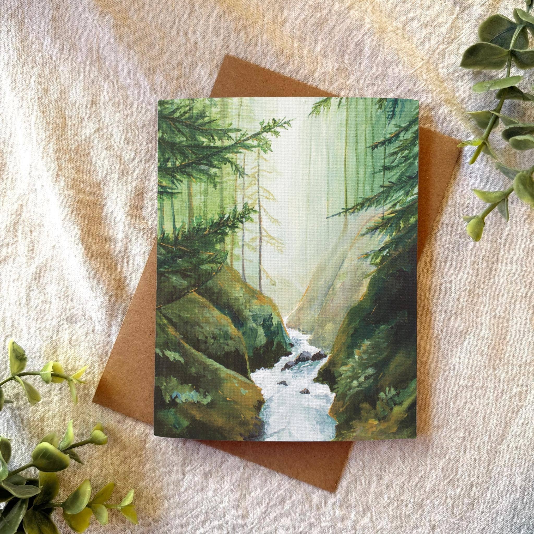 Watercolor Nature Greeting Card, Mountains landscape art