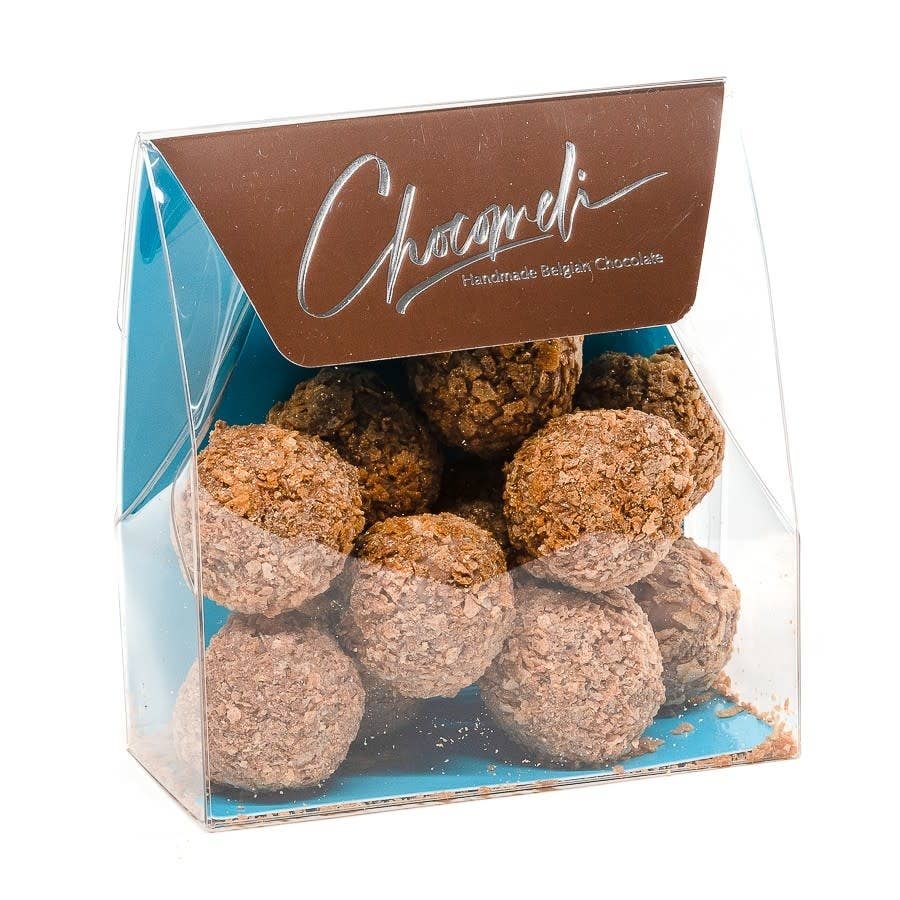 Net weight: 50 Grs Dark chocolate 64% from Madagascar (Sambirano) OR Milk chocolate 44% from Java Gluten free This product is handcrafted in Brussels (Belgium). Our handmade production is certified by Belgian Federal Government.