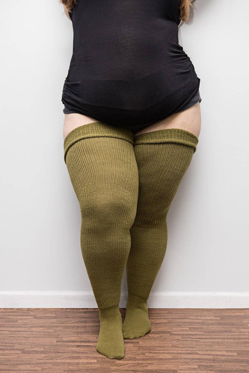 Plus Size Thigh High Socks - Mustard Yellow