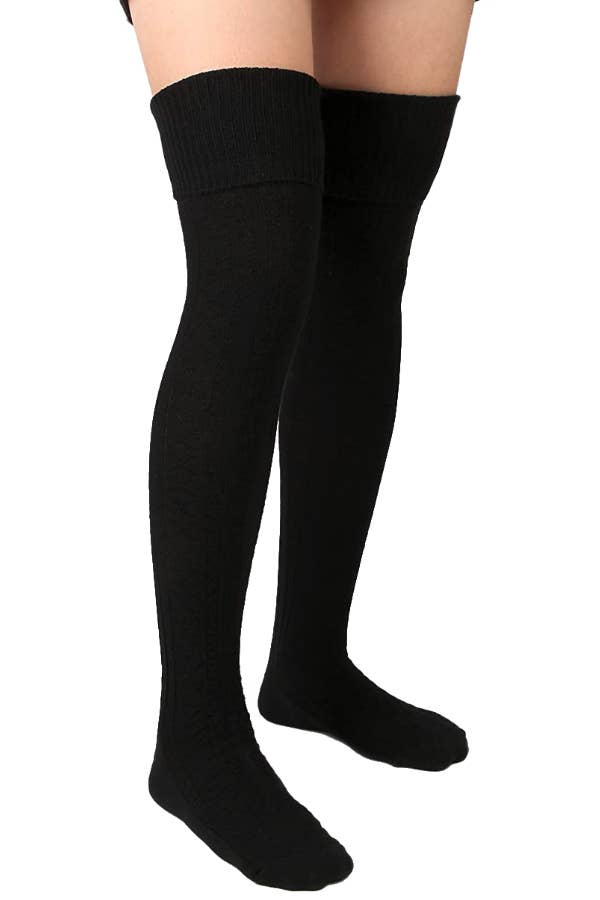 Watch your aura GLOW in warm knit socks in Mustard Yellow! This shade compliments all skin tones, easy to dress up or down, and adds the perfect pop of color to the basics you already have. We love to accompany great light wash jeans, a black bodysuit, and these thigh high boot socks under over the knee boots. Feeling brave? Swap out black for bright royal blue, the perfect color block for yellow shades. These are essentially leg warmer socks made from the same soft acrylic professional ballerina’s use. These thigh high knit socks are color-fast, easy to care for, and durable. Be comfortable and cute wearing our thigh highs without them strangling your thighs.