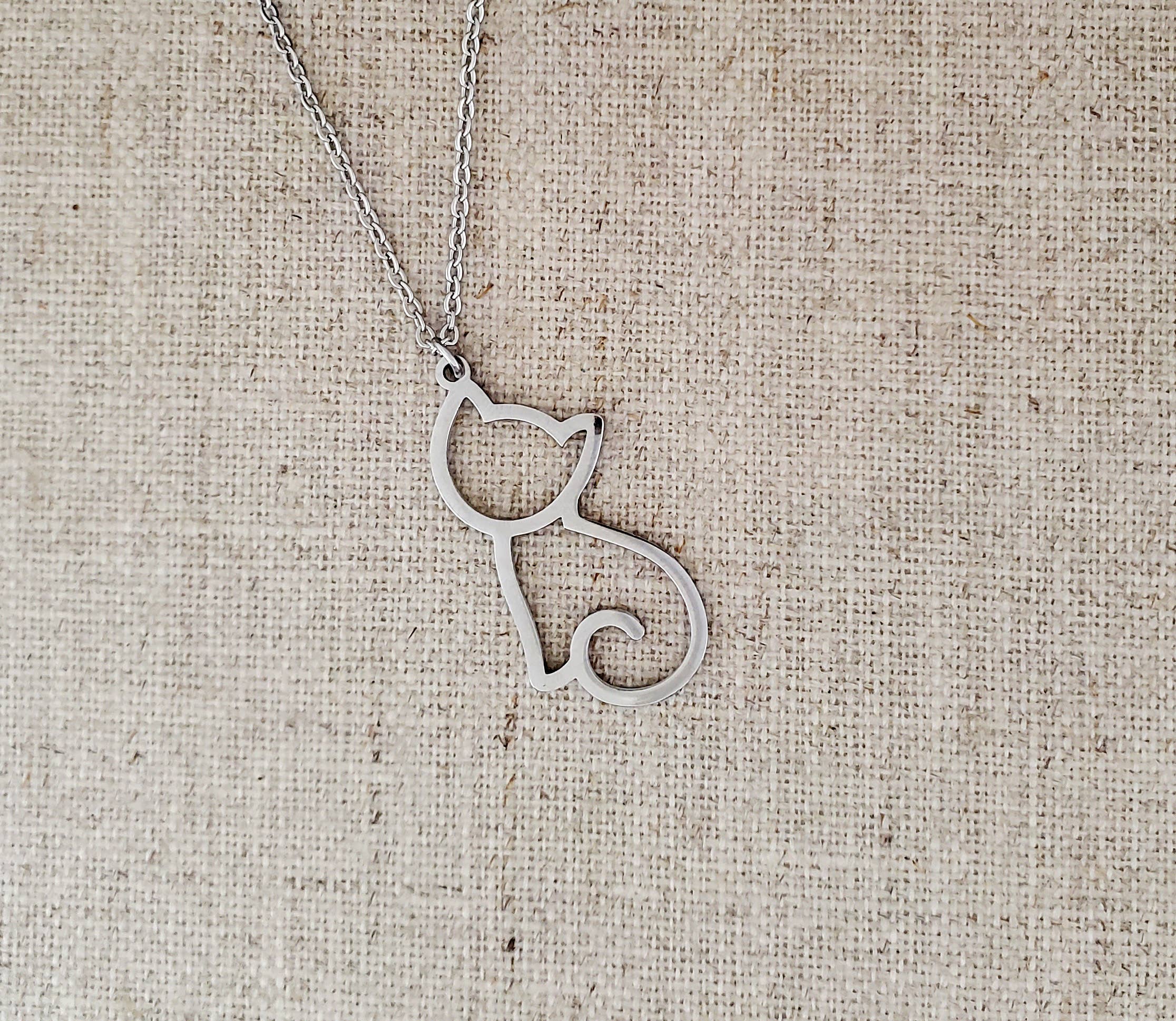 MADE IN KOREA WHITEGOLD PLATING CRYSTAL CAT PENDANT NECKLACE - PENDANT 3/4 X 1 1/8 INCHES LENGTH 18 INCHES