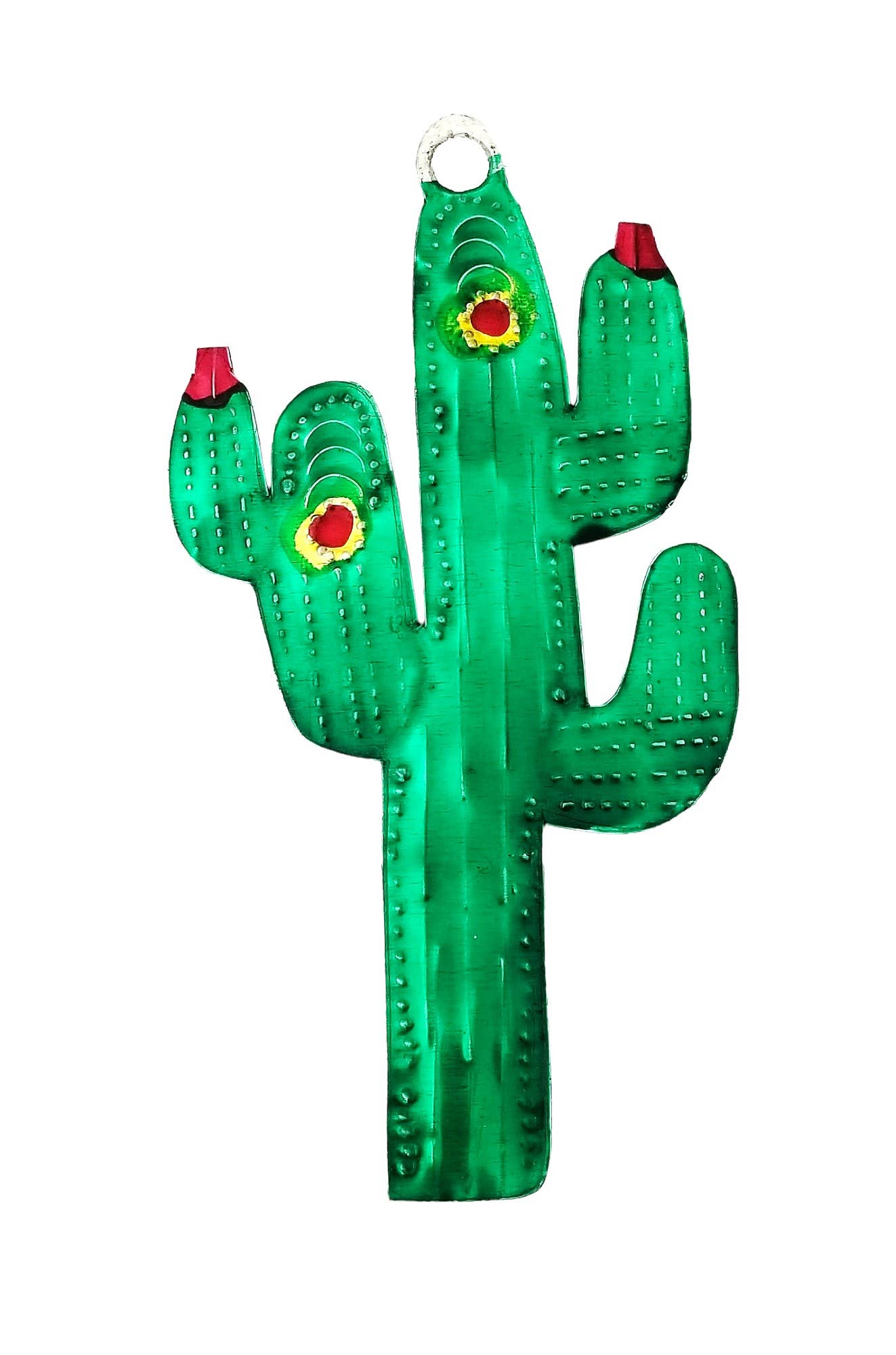 Hand embroidered and double sided Saguaro cactus ornament from 100% sheep wool. Handmade in by Woman's group in rural Andes of Peru Size: 13 x 10 cm. Size: 4.x3.in.