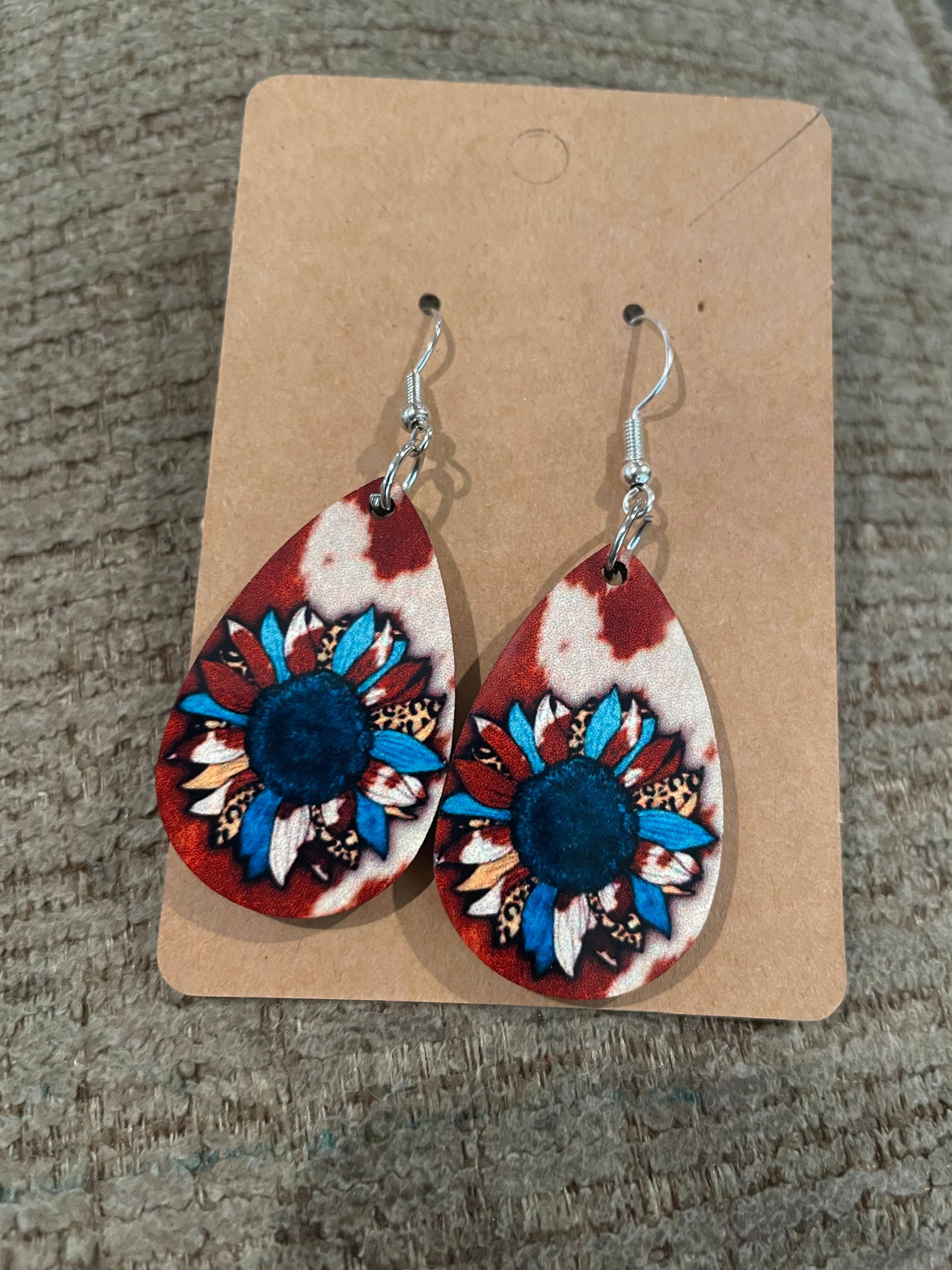 sunflower mandala hand painted lightweight wood earrings