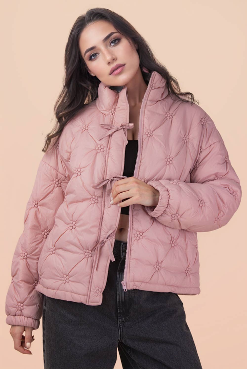 Introducing our Bebe puffer, designed for ultimate convenience. This boxy, oversized silhouette, front zip closure + snap button cuffs is perfect for planes, trains, and more.