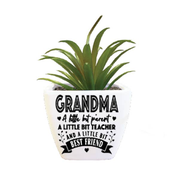Sentiment Succulents, by the H&H Group, are the perfect birthday or anniversary gift as they add lightness and cheer to any décor - easy to display on a bookshelf or desk. This small artificial succulent is the best kind of houseplant as no green thumb is needed! Keep the growing season alive at the change of seasons in the fall and winter! The succulent is nested in a melamine pot, surrounded with pebbles, and printed with a heartfelt message. Thank You message reads, "Thank you so much for everything."