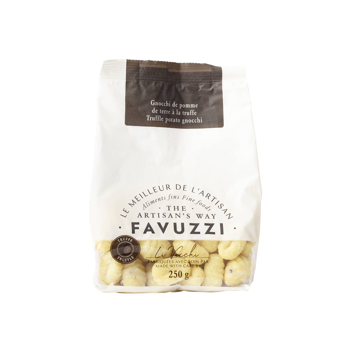 Favuzzi's potato gnocchi has been crafted in Tuscany with great care and attention to detail. This age-old recipe and production process yields gnocchi that are truly unlike any other. Enjoy an incredibly fluffy texture and flavour, thanks to the careful kneading techniques and precision of our artisanal makers. An effortless dish that'll tantalize your taste buds, our handmade potato gnocchi is sure to be a crowdpleaser! Uses; Gnocchi are the perfect pasta for a comforting dish. But it is also an incredibly versatile type of pasta. They are also excellent in salads or soup. Plus, gnocchi make some great and filling side dish. You can even try to switch your classic perogies for gnocchi next time! Distinctives attributes; Before being processed, the gnocchi mixture is first heated on the fire, which provides our gnocchi with incomparable lightness and digestibility. It also prevents stickyness. Contains: Wheat.