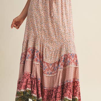 Wholesale Western Boho Chic: Patchwork Belted Skirt (New Color)