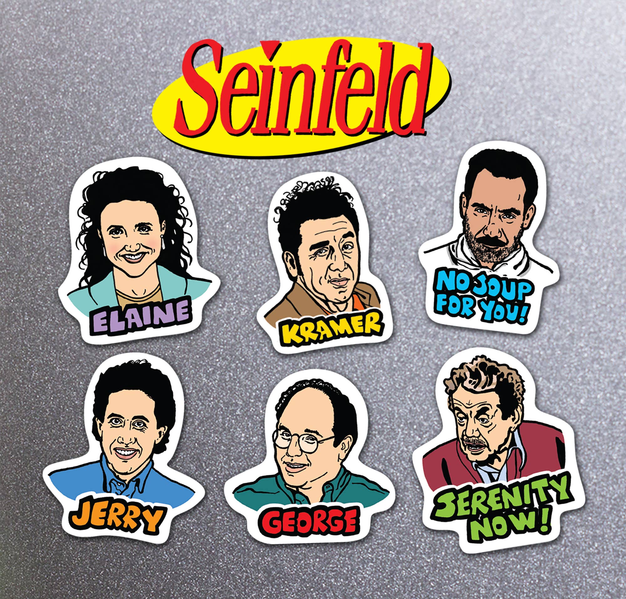 Who doesn't love fridge magnets? Six different characters are included in each pack. Hand lettered type adds a bit of fun to each one. Magnets are approx. 2" x 1.5" Each set of magnets is packaged in a cello pack with a card stock backer card stock topper with a hole, ready for hanging.