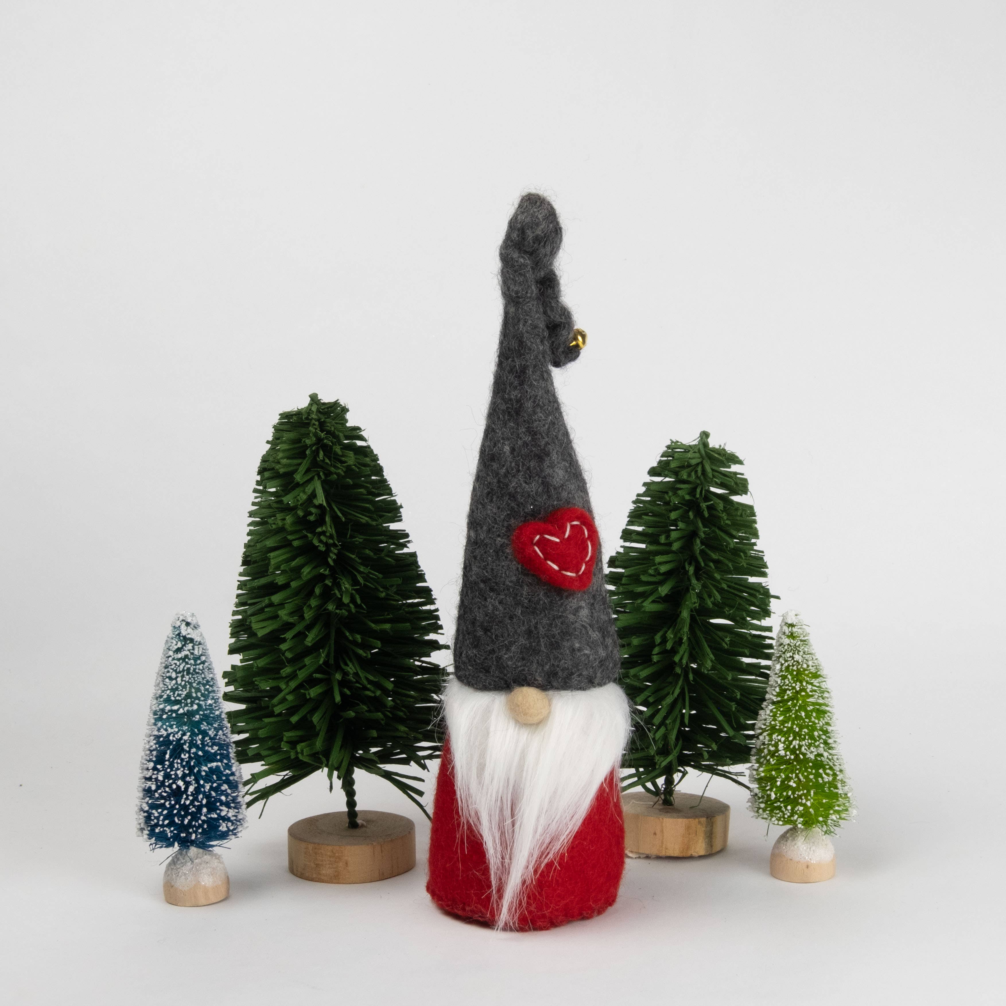 This gnome's name is Carwyn. He wears a light brown coat and a white winter cap. Carwyn is a messenger gnome. Today he holds a felted red heart balloon and is ready to deliver a heartfelt message of love on your behalf. Gnomes do not say "I love you" lightly. When a gnome loves you, it is for life and without bounds. Each hand-felted gnome arrives in a sleeping bag with a bookmark that tells their name and their unique story. All MJ & Me are crafted by hand with lots of love and a little bit of magic. We take pride in making sustainable gifts and decor inspired by nature. It is our hope that these gnomes will spark the imagination of your inner child. We hope you love them as much as we do. PLEASE NOTE: Keep out of reach of pets and supervise near children.