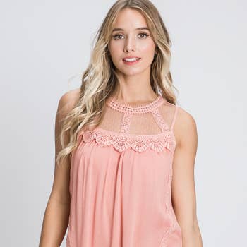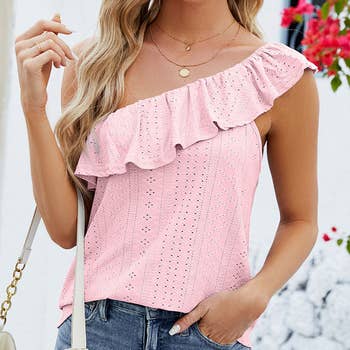 V Neck Jacquard Eyelet Tank Top AXR037