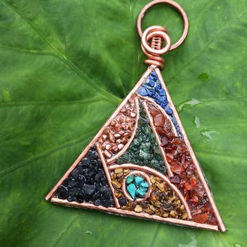 Our unique color-changing Mirage Beads are set in a hand fabricated pure copper bezel-set pendant. Mirage Beads are thermo-sensitive and continuously change color, changing through all the hues of the rainbow as they warm.