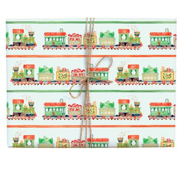 Elf Train holiday wrapping paper