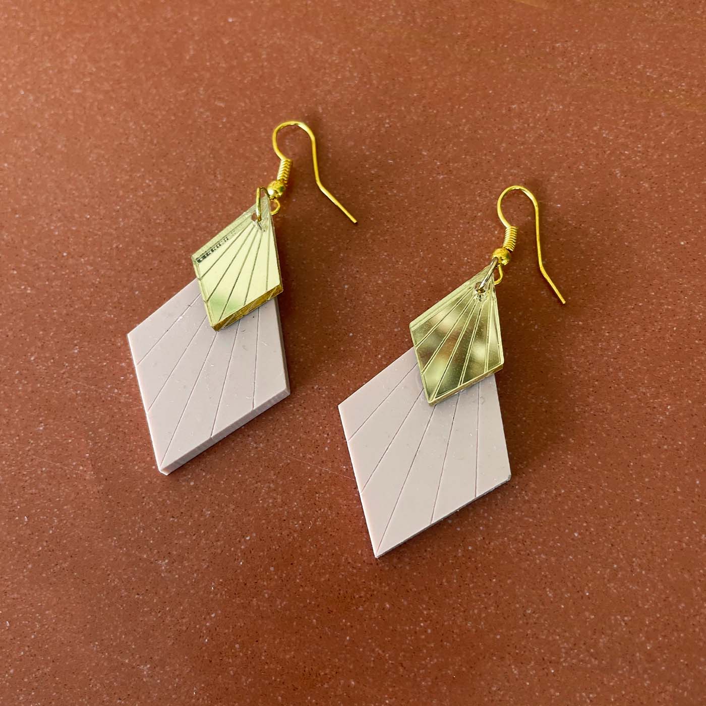 Sustainable upcycled plastic pendant. Gold-plated necklace with eco-brass and opal pendants. The necklace is high quality 24k gold-plated silver 925. Pendant in golden brass. Length necklace: 45 cm