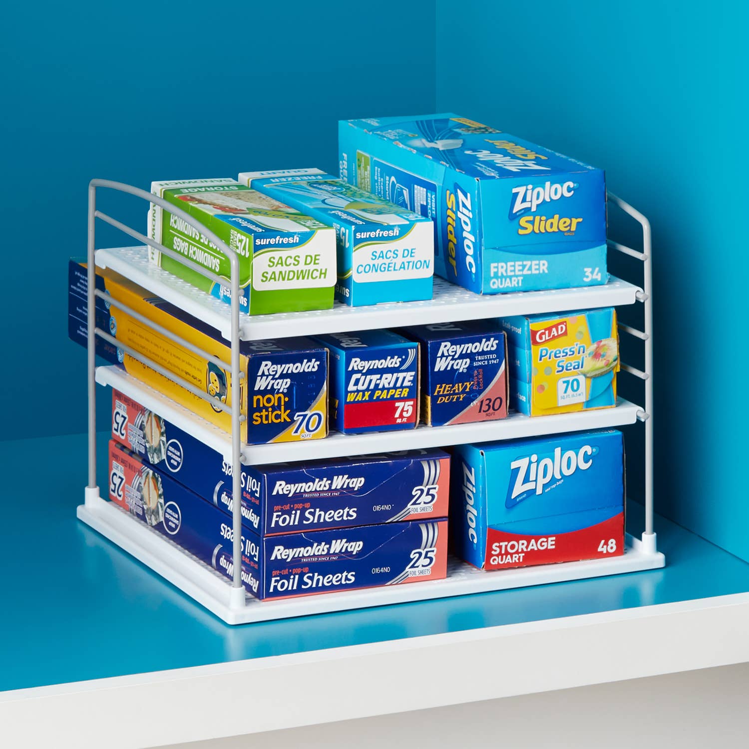 Stora bag™ food bag dispenser keeps all your bags in one tidy spot. Individual compartments organize food storage bags in any drawer or cabinet. Bright labels and wide slots help you easily find and pull the bag you need. A removable lid makes reloading quick. With supplies organized, meal prep is in the bag.