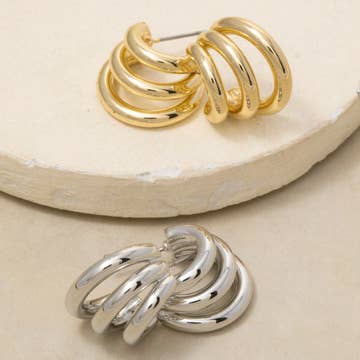 18K Non-Tarnish Multi C Hoop Earring 18K Gold Plating Stainless Steel Measurement (L x W inch):0.47inx0.99in - Lead-free, Nickel-safe - Hypoallergenic - Water Resistant