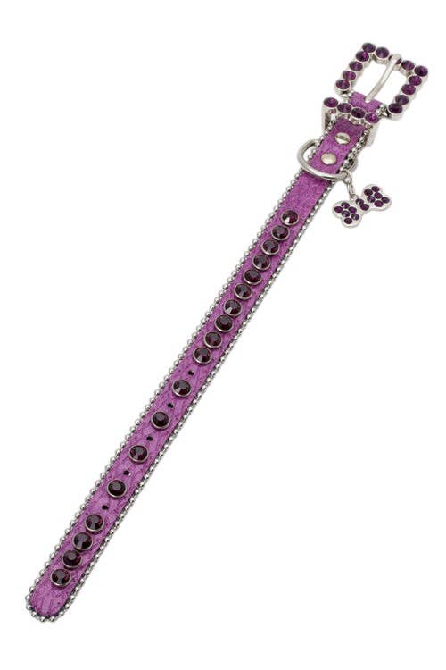This dazzling crystal-like dog collar is designed for special events and leaves no room to hide its charm. * The collar webbing is elevated with sparkling rhinestones that shine in no time! * Our in-house design team carefully selected golden hardware for its buckle and BP tag to enhance that 'sparkle'. Material: * Collar - high-density polyester webbing * Synthetic rhinestone * Buckle - zinc alloy metal Care: Wipe to clean