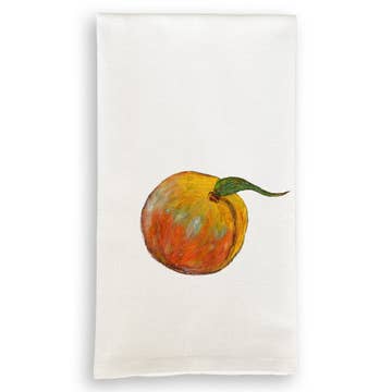 28 x 28 inches | 100% cotton | features an oil painting by Betsie Richardson Oh, Suzie. This ripe summer peach has jammed her way into the hearts of our customers for years. This soft, fairtrade cotton tea towel comes steam-pressed with a Betsie Studios branded particleboard hanger.