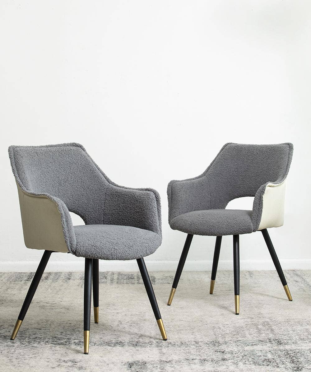 Ayuka White Boucle Fabric Accent Chair with Black Iron Legs