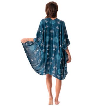 Wholesale Green Muslin Kimono Robe with Golden Moon Phases / Poncho