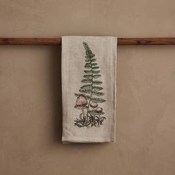 Midnight Mushrooms Linen Cotton Handmade Tea Towel